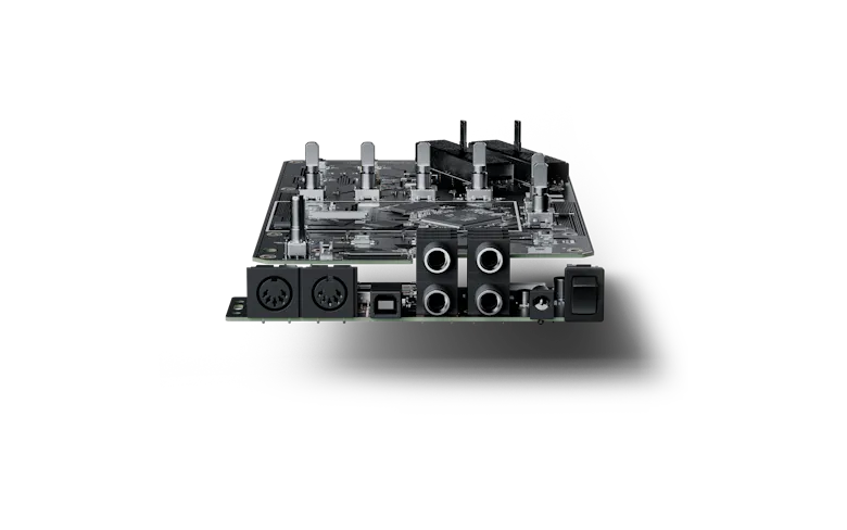 Osmose features various connectivity options to help you in live and studio settings. The Osmose back panel contains L/R 1/4” jacks, two pedal inputs, a MIDI In/Out combo, and a USB port. A headphone jack socket with its own volume control is also featured on the front panel.external midi